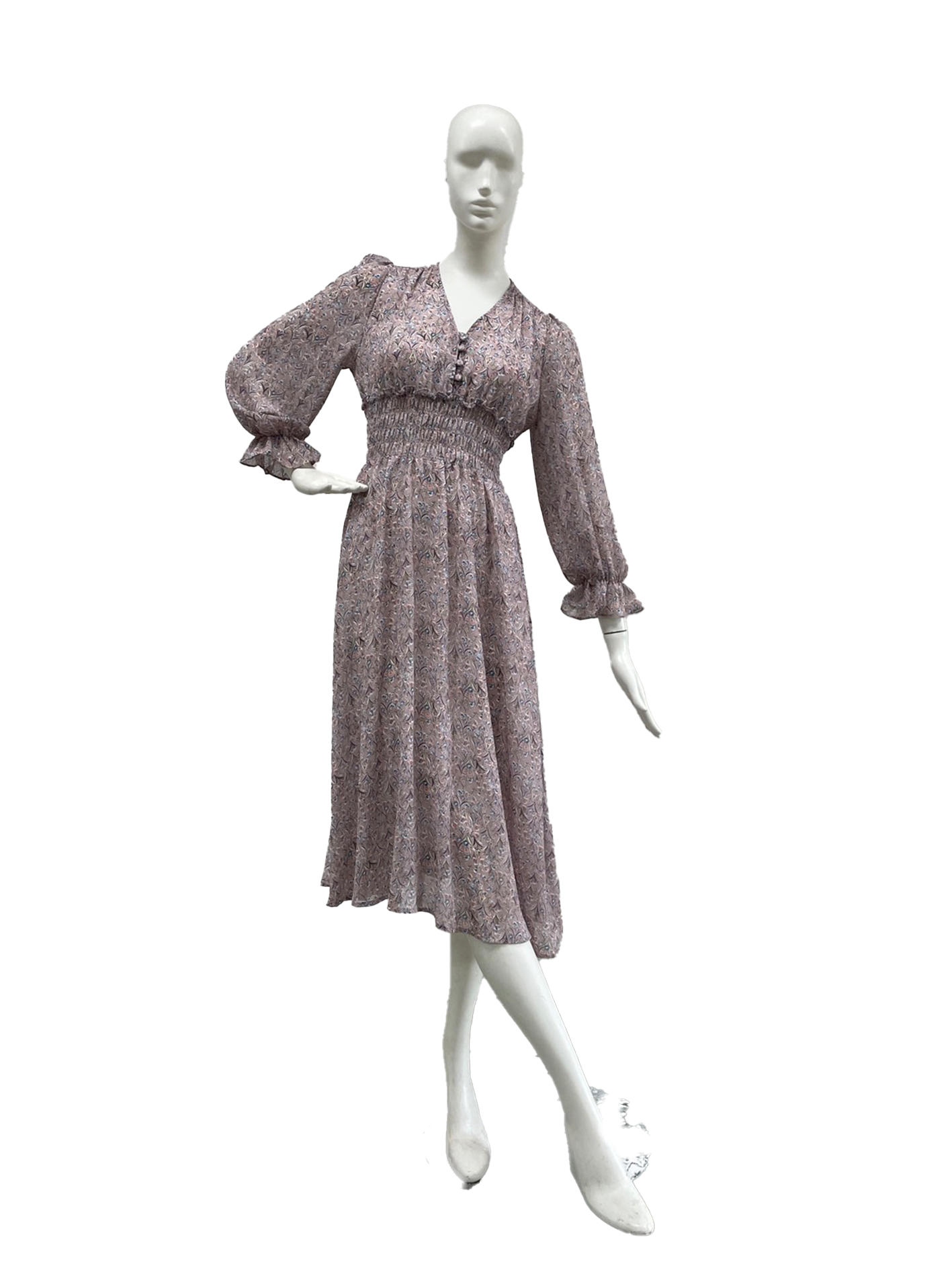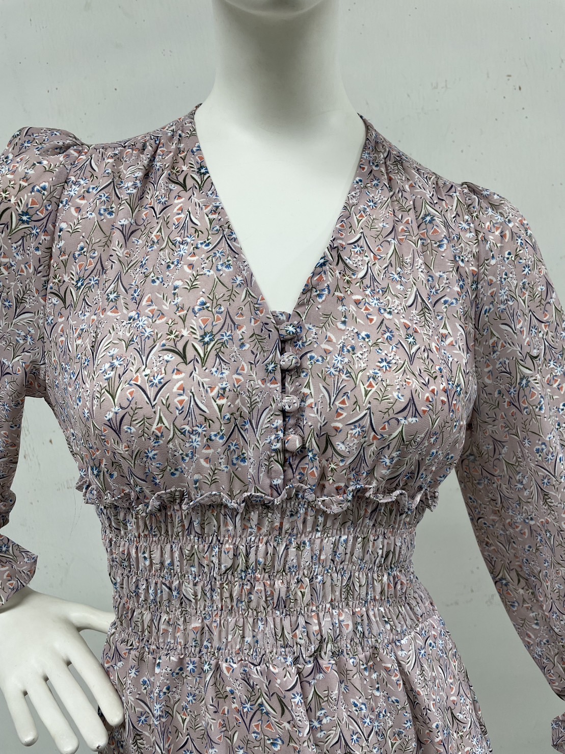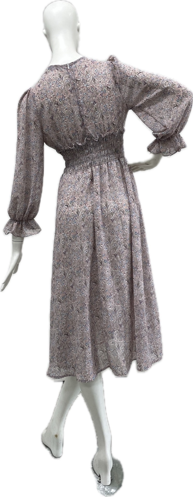 收腰小碎花洋裝(長袖)